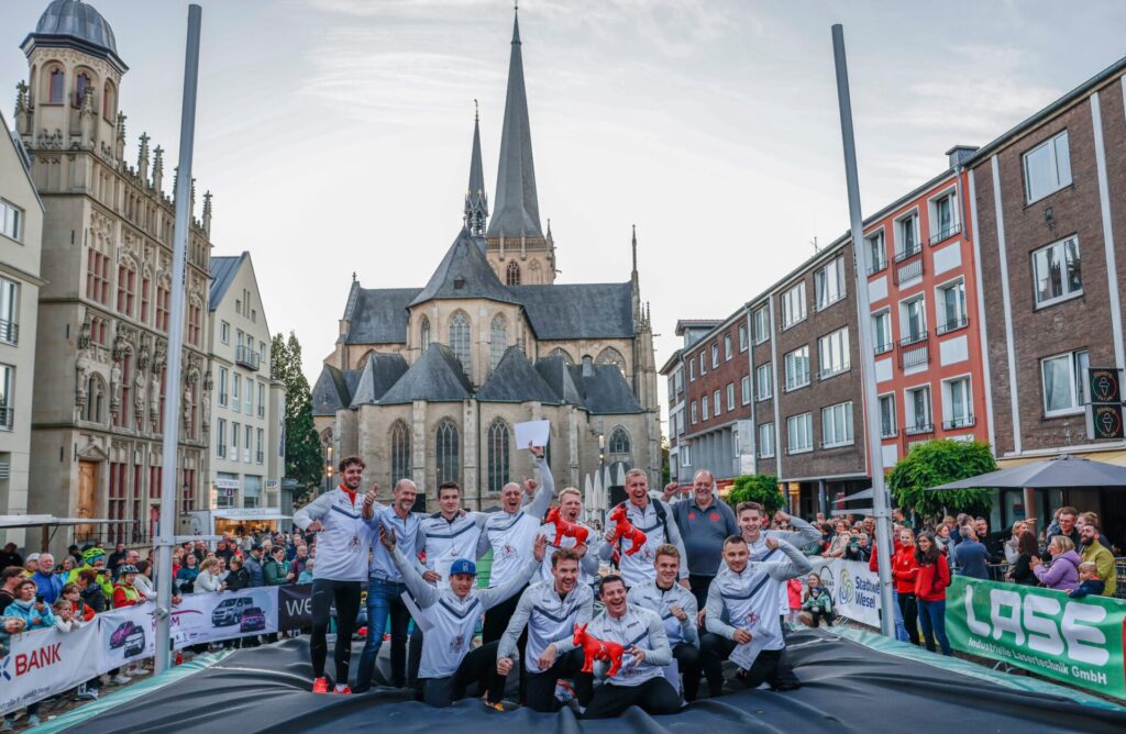 Olympiastimmung und eine Hexenkesselatmosphäre erwartete die Zuschauer beim 2. Domspringen Wesel auf dem Großen Markt. 12 Weltklasseathleten katapultieren sich in Höhen zwischen 5,50m und 6,00m und nahmen am Ende der Veranstaltung den „WeselEsel“ mit nach Hause.